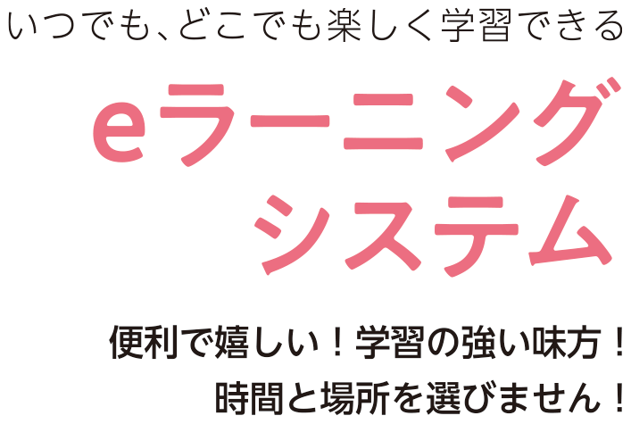 eラーニングなら「いつでも・どこでも・何度でも」学習できます。ご家庭で、外出先で、退勤・通学時、お昼休みや放課後など、時間と場所を選びません。